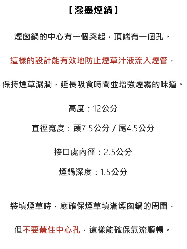 煙囪鍋的中心有一個突起,頂端有一個孔。這樣的設計能有效地防止煙草汁液流入煙管,保持煙草的濕潤,從而延長吸食時間並增強煙霧的味道。上釉的表面不易附著污垢或殘留物,因此煙杯在使用後更容易清洗。