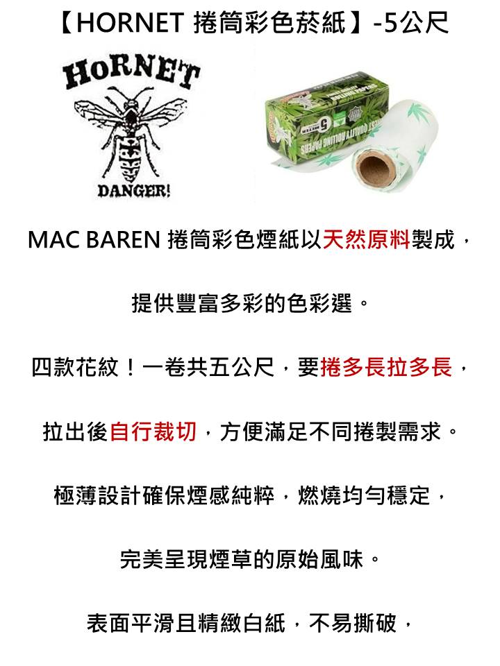HORNET|捲筒彩色菸紙|5公尺|白紙