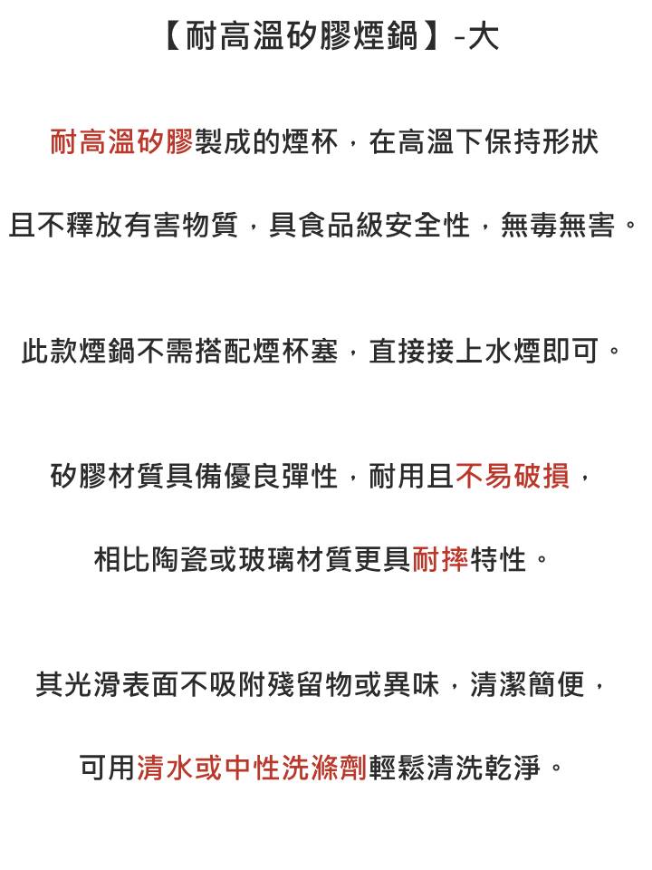 耐高溫矽膠煙杯能承受高溫且不釋放有害物質,食品級無毒,彈性佳、不易損壞。表面光滑、不吸附殘留物或異味,易清潔且耐化學腐蝕。輕便且便於攜帶。