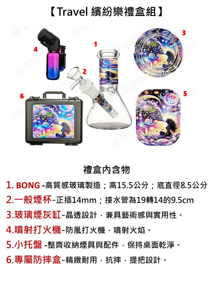 BONG 、玻璃煙灰缸、 一般煙杯、 小托盤、 打火機、外盒