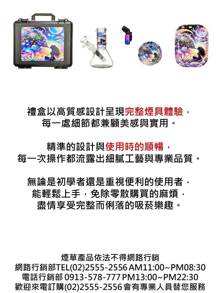 BONG|水煙斗|乾菸草專用|玻璃|全套禮盒