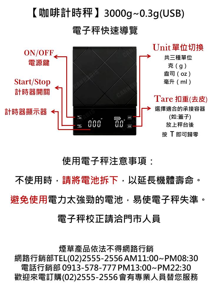 帶有計時功能,電子顯示儀。它的最大量程是3000克,而最小可測量到0.3克,這意味著無論是輕如粉末的物質還是較重的小物件,都能精準測量。